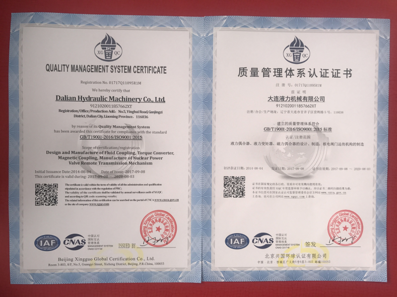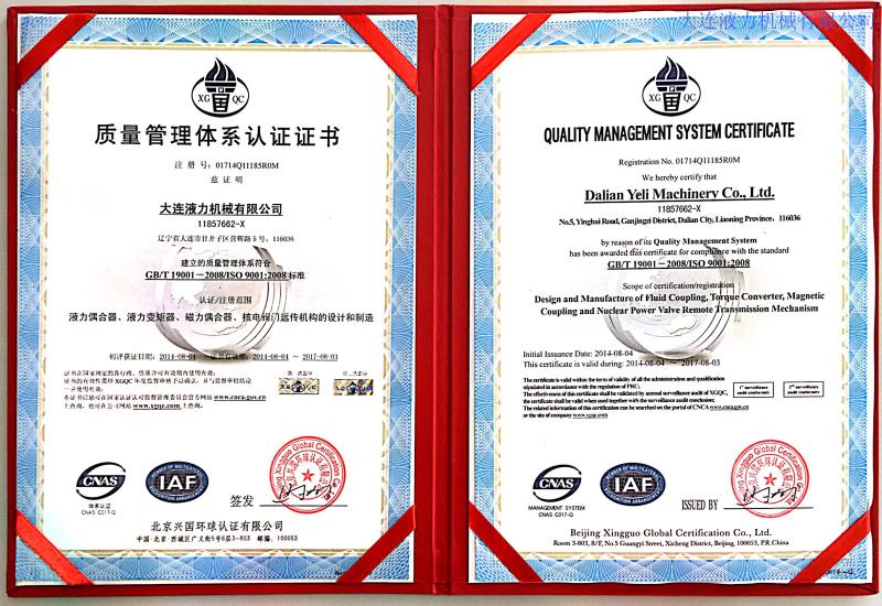 大連液力機(jī)械有限公司曾多次被評(píng)為省、市級(jí)先進(jìn)企業(yè)、文明單位;遼寧省“用戶滿意企業(yè)”、曾獲“遼寧五一獎(jiǎng)狀”,企業(yè)信譽(yù)良好,產(chǎn)品品牌廣為認(rèn)可。公司建立了完善的研制開(kāi)發(fā)和質(zhì)量保證體系,在國(guó)內(nèi)液力行業(yè)較早通過(guò)ISO9001質(zhì)量體系認(rèn)證和包括職業(yè)健康、安全、環(huán)境三體系認(rèn)證,2015年又通過(guò)了國(guó)軍標(biāo)質(zhì)量體系認(rèn)證。企業(yè)連續(xù)二十余年被省、市工商局評(píng)為“重合同、守信用”單位,二〇〇二年獲國(guó)家統(tǒng)計(jì)局“遼寧省信譽(yù)優(yōu)秀企業(yè)”,連續(xù)多年被評(píng)為“AAA”級(jí)信用企業(yè),公司主導(dǎo)產(chǎn)品連續(xù)多年獲遼寧省和大連市名牌產(chǎn)品,2008年至今是大連市高新技術(shù)企業(yè)認(rèn)證企業(yè)。